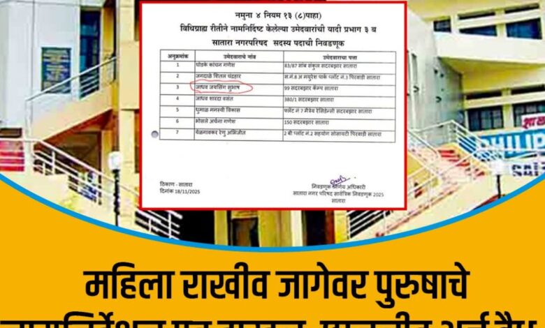 सातारा नगरपालिकेच्या प्रभाग क्रमांक तीन मध्ये सर्वसाधारण महिलांसाठी जागा राखीव असताना त्या जागेवर एका पुरुषाने नामनिर्देशन पत्र दाखल केले. त्यानंतर जेव्हा छाननी प्रक्रिया पार पडली त्यावेळी निवडणूक अधिकाऱ्यांनी हा अर्ज वैध ठरवल्याचा धक्कादायक प्रकार समोर आला आहे. यामुळे निवडणूक अधिकाऱ्यांच्या कार्यपद्धतीवर प्रश्न उपस्थित होत आहेत.